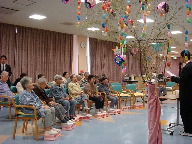 また、ある職員は自然の姿から自分の今の心境を比較し、自分も地球様のようにありたいと発表されていました。今迄、地球様をとても遠い存在として考えていたように思います。しかし、この度の七夕祭で利用者の皆様より、日頃感じておられる地球様への感謝のお言葉をお聞きしていると、地球様とは、いつも私達と共に生き自らの姿をもって私達に正しき進化の道筋を示して下さっておられるのだと思いました。