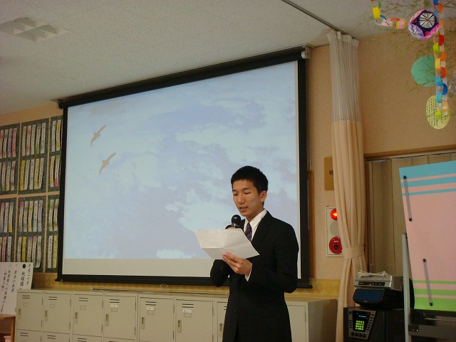 七夕祭当日は、デイサービスの部屋の中を少し暗くして地球上の美しい風景をスクリーンに写し出し、スライド形式で次々に移り変わる映像を見て戴きながら地球様への感謝の言葉を読み上げました。